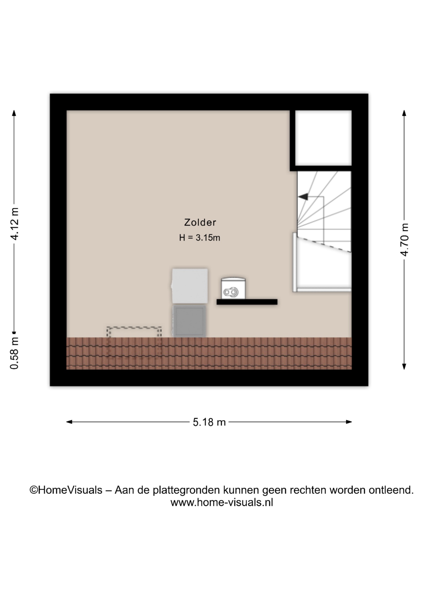De zolderverdieping is bereikbaar via een vaste trap en biedt volop mogelijkheden. Hier bevinden zich de opstelplaats voor de CV-ketel en het witgoed. Dankzij het dakraam is er prettig daglicht aanwezig en is deze ruimte eenvoudig om te vormen tot een extra (slaap)kamer.