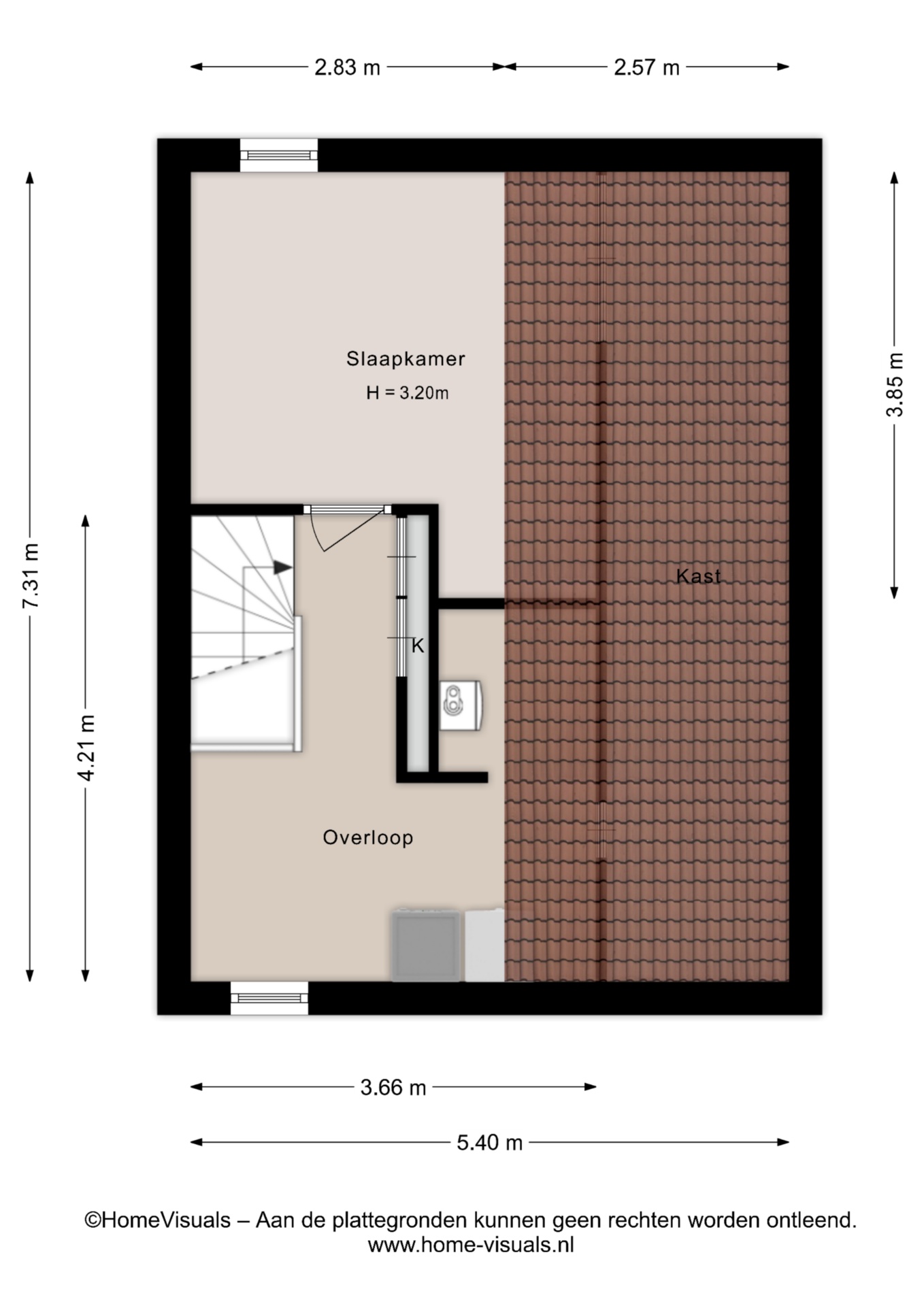 Via een vaste trap bereik je de tweede verdieping. Hier vind je een overloop met opstelplaats voor witgoed, knieschotten en de CV-ketel. Daarnaast is hier een vierde slaapkamer aanwezig, ideaal als werkruimte, hobbykamer of extra slaapkamer.