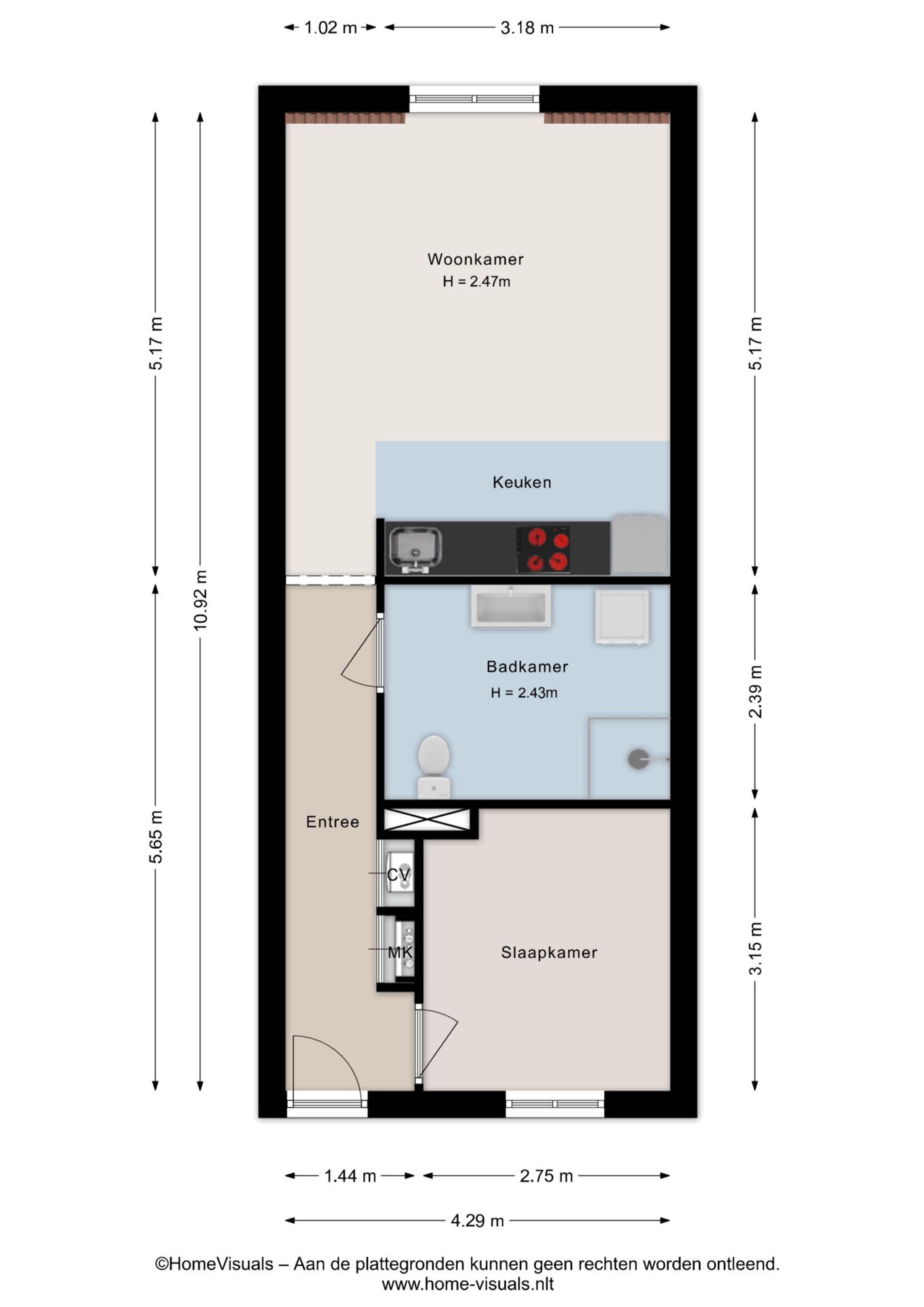 - Woonoppervlakte: 47 m2.