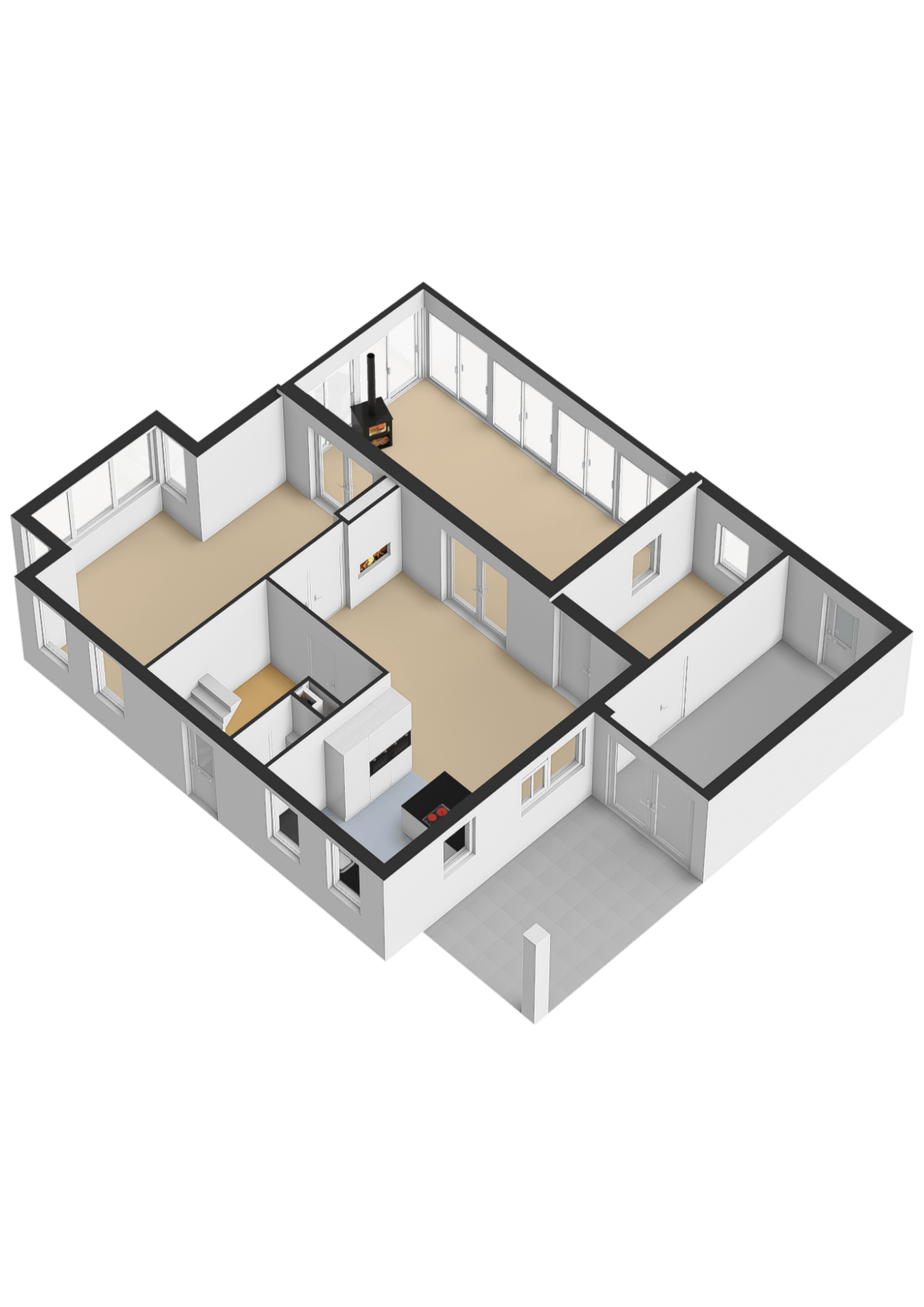 De woonkamer met zij-erker en doorkijkhaard voegt sfeer toe zonder het open karakter te verliezen. Daarnaast is er ruimte voor thuiswerken of studeren, prettig afgescheiden maar toch verbonden met de rest van het huis.