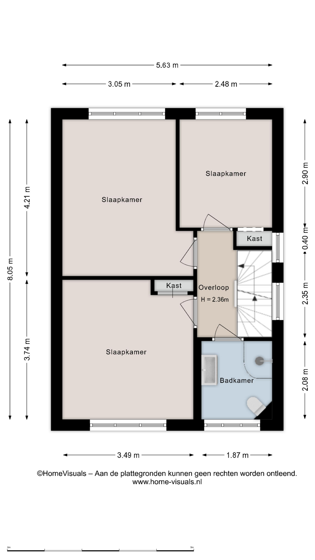 Op de eerste verdieping kom je op de overloop die toegang biedt tot drie ruime slaapkamers, waarvan twee zijn voorzien van een vaste kast. De badkamer is ingericht met een douchecabine, een hangend toilet en een wastafelmeubel.