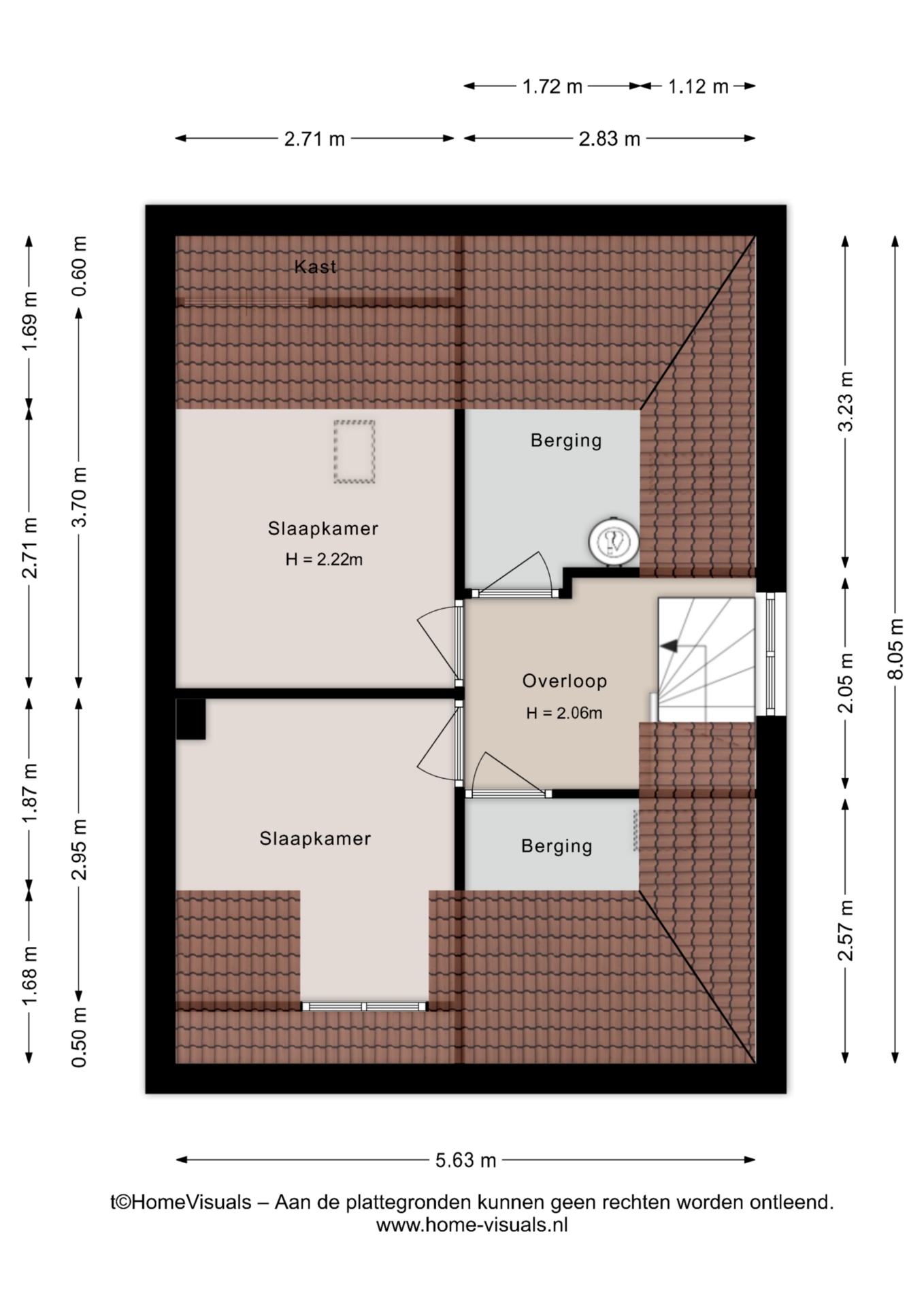 Via een vaste trap bereik je de tweede verdieping. Hier bevindt zich een ruime zolderverdieping met een overloop met dakkapel en diverse praktische bergruimten. Daarnaast zijn hier nog twee slaapkamers gerealiseerd, waarvan één met een dakkapel en één met een dakraam.