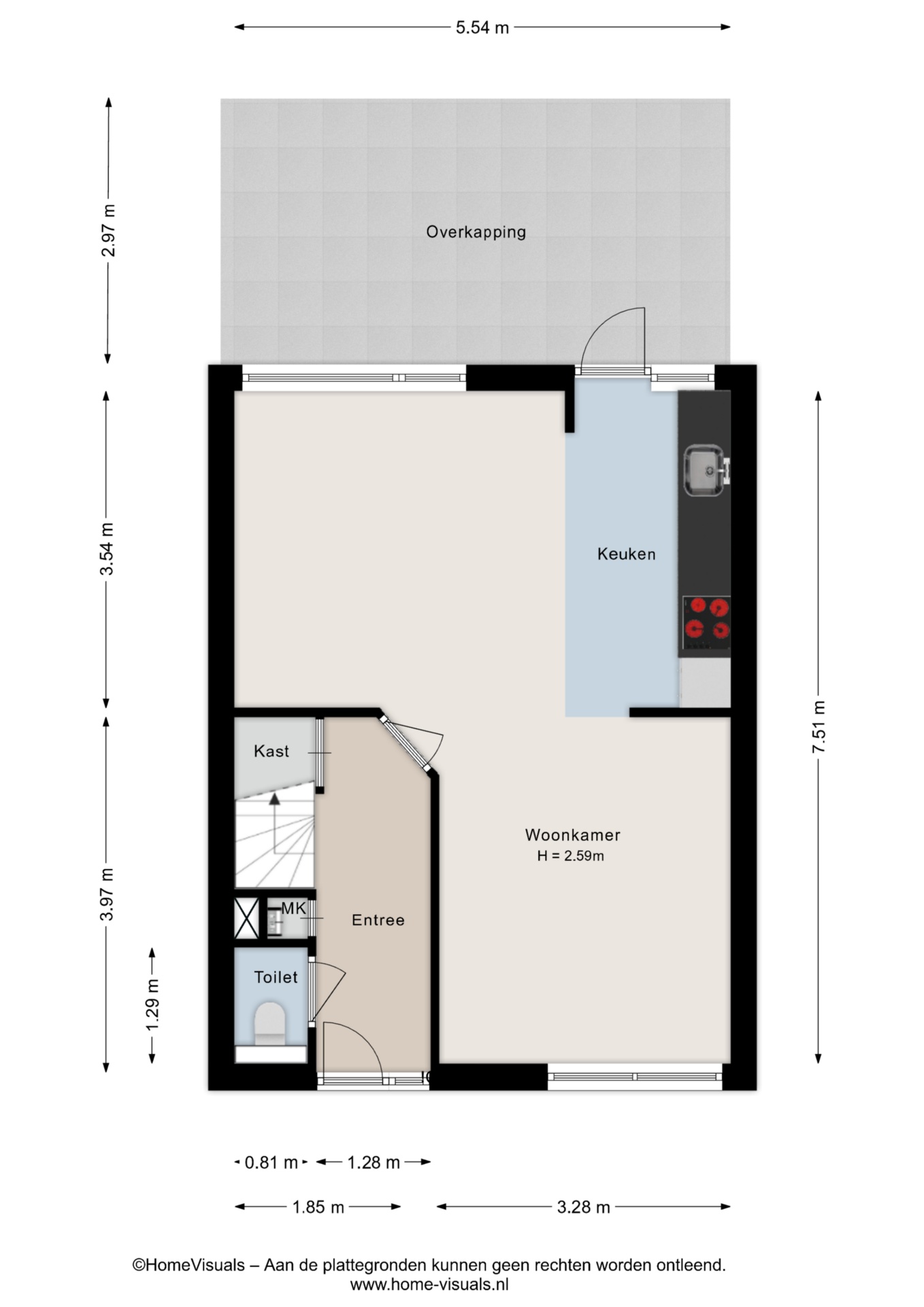 Bij binnenkomst tref je de hal met meterkast, trapopgang, trapkast en een hangend toilet met fontein. Vanuit hier loop je door naar de straatgerichte woonkamer, die dankzij de grote raampartijen prettig licht is en ruimte biedt voor een comfortabele zithoek. Aan de achterzijde bevindt zich de tuingerichte open woonkeuken, modern uitgevoerd en een heerlijke plek om te koken en samen te komen. Via de loopdeur stap je zo onder de terrasoverkapping, waar je beschut kunt genieten van het buitenleven met vrij uitzicht over het achterliggende groen.